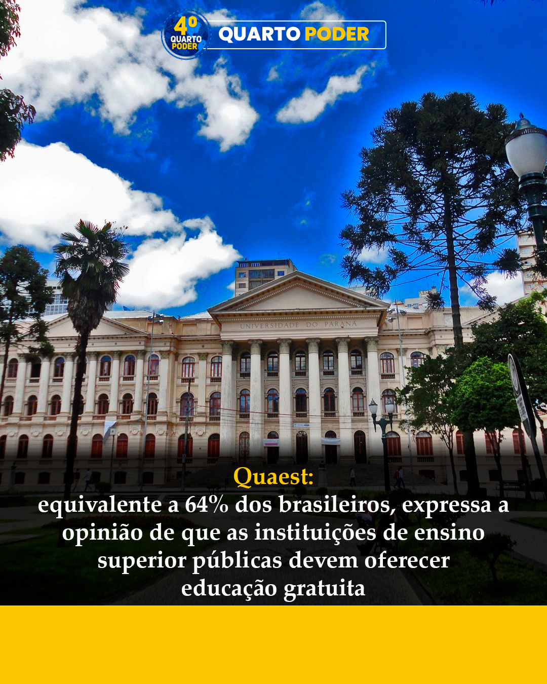 Quaest: equivalente a 64% dos brasileiros, expressa a opinião de que as instituições de ensino superior públicas devem oferecer educação gratuita